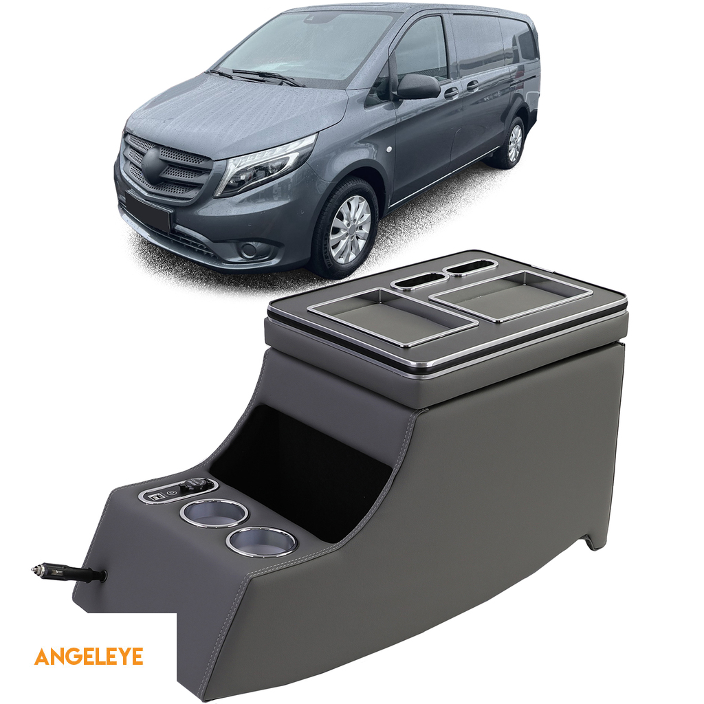 Consolea centrală cu cotieră și cutie de depozitare în gri a fost special concepută pentru modelele Mercedes Viano și V-Class. Cu dimensiuni de 70 cm lungime, 38 cm înălțime și 30 cm lățime, oferă un adaos practic la interiorul vehiculului.