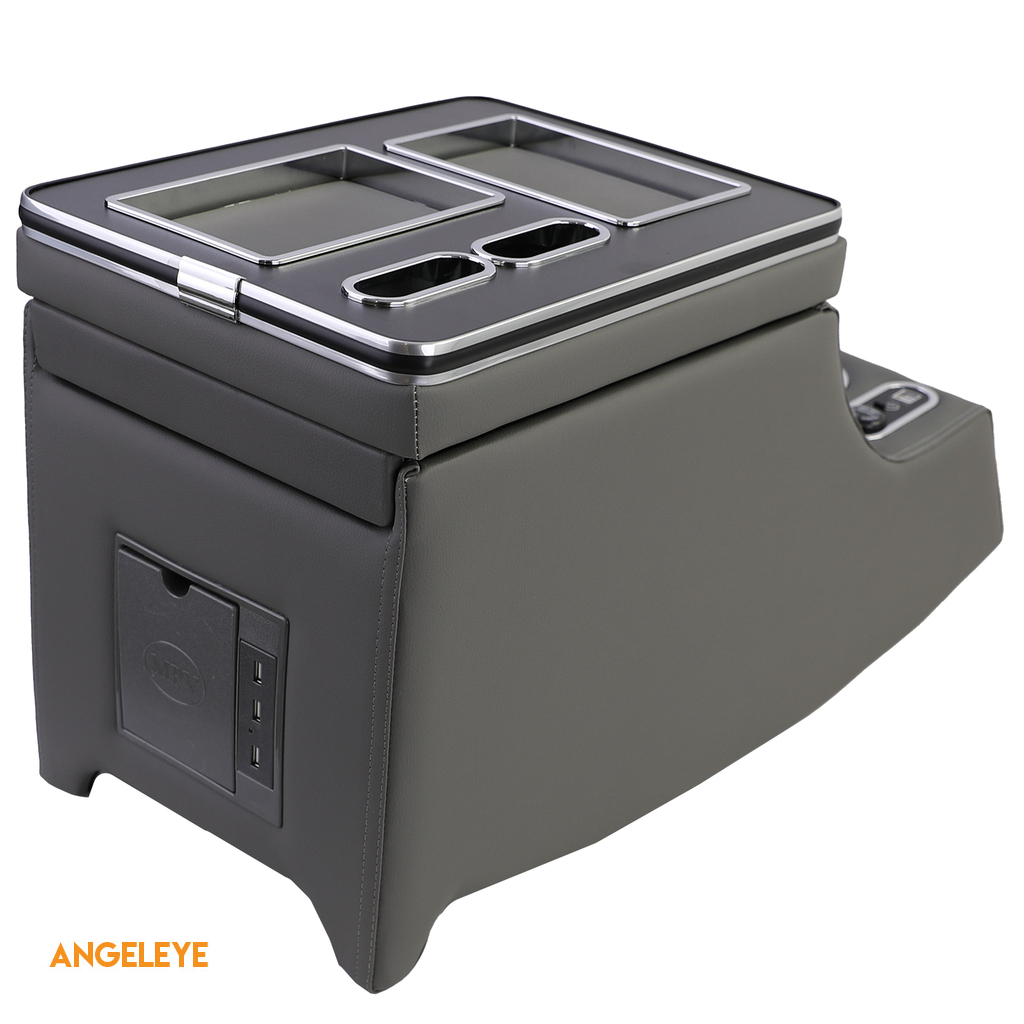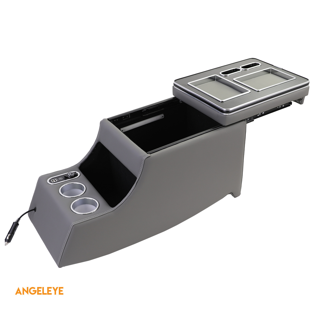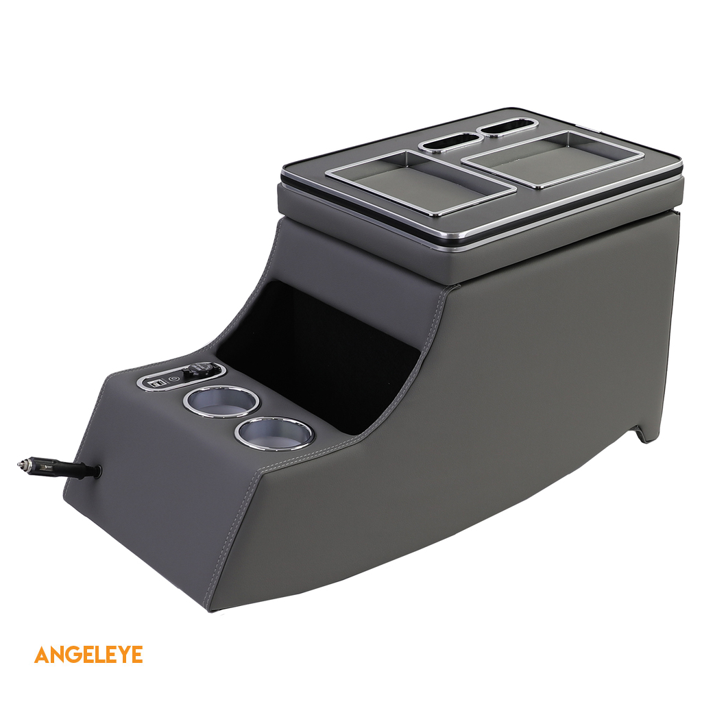Compartimentele de depozitare ale consolei sunt iluminate cu LED-uri albastre și pot fi activate sau dezactivate după cum este necesar. Consola dispune de o priză de 12 volți, precum și de diverse compartimente de depozitare, permițând o organizare eficientă a obiectelor.