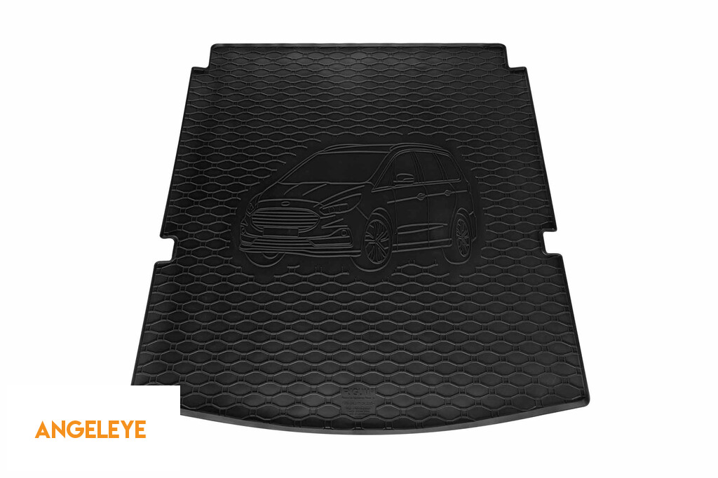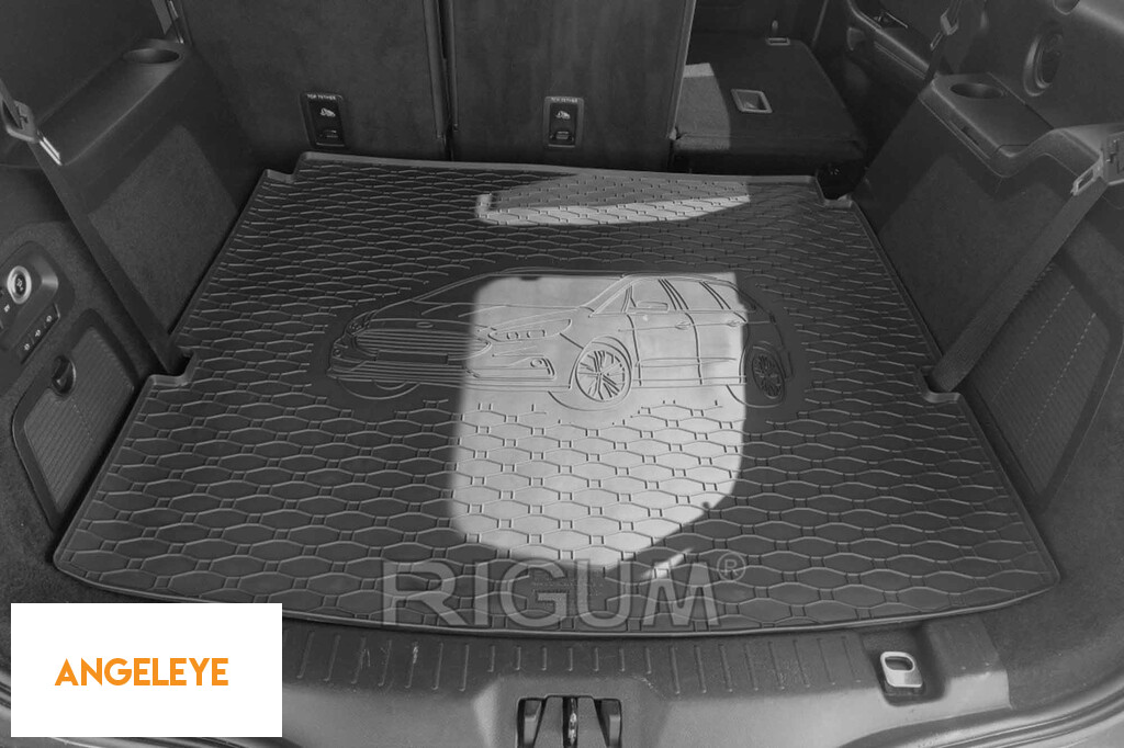 Covor de cauciuc pentru portbagaj de la Rigum, potrivit pentru Ford Galaxy cu 5 locuri după 2015, cu logo-ul siluetei vehiculului, negru