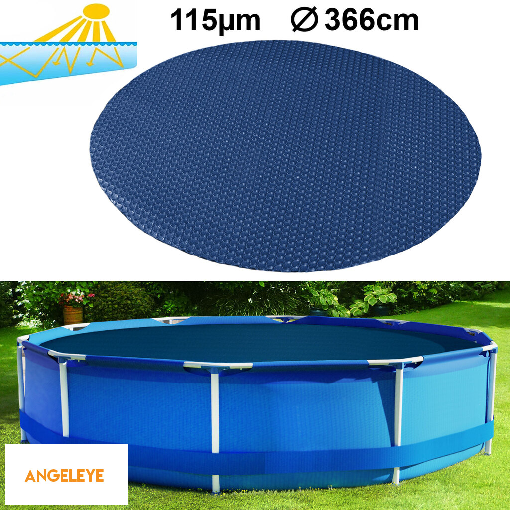Căptușeală solară pentru piscină de 366 cm, încălzitor de piscină, folie solară, rotundă, 115µm, albastru-negru
