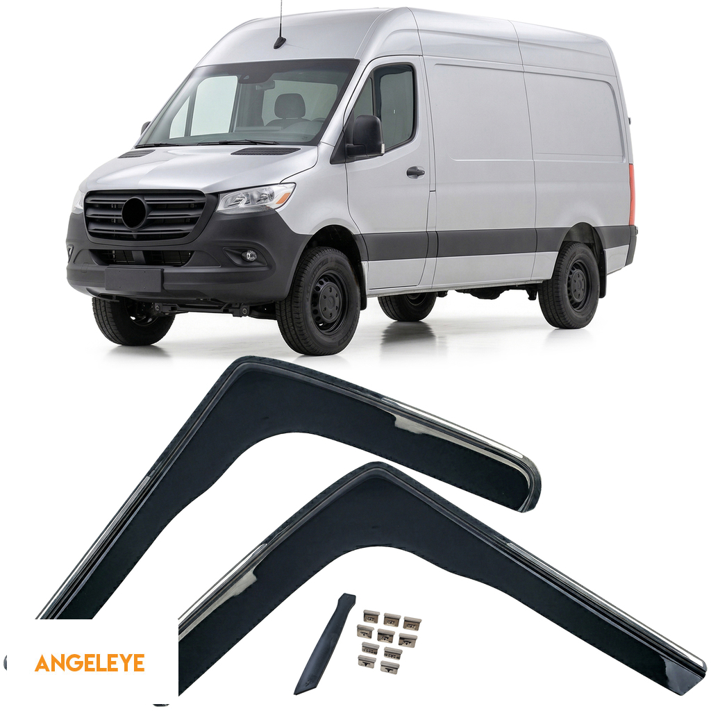 Deflector de vânt, deflector de ploaie, 2 piese, negru, potrivit pentru Mercedes Sprinter 907 din 2018