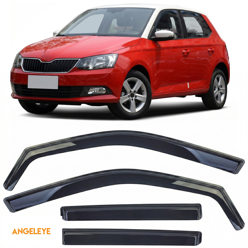 Deflector de vânt, deflector de ploaie, 4 piese, negru fumuriu, potrivit pentru Skoda Fabia 2014-2021