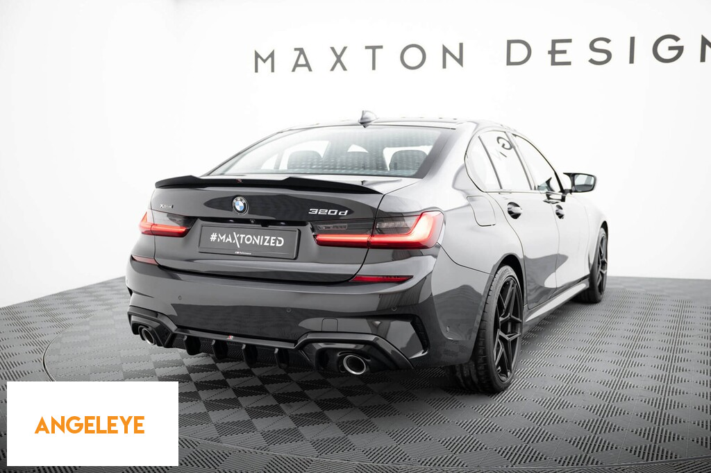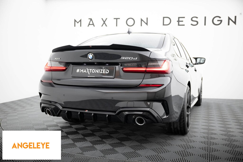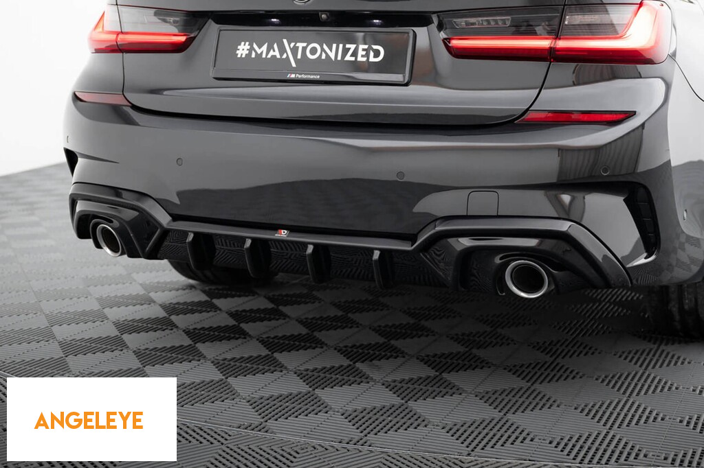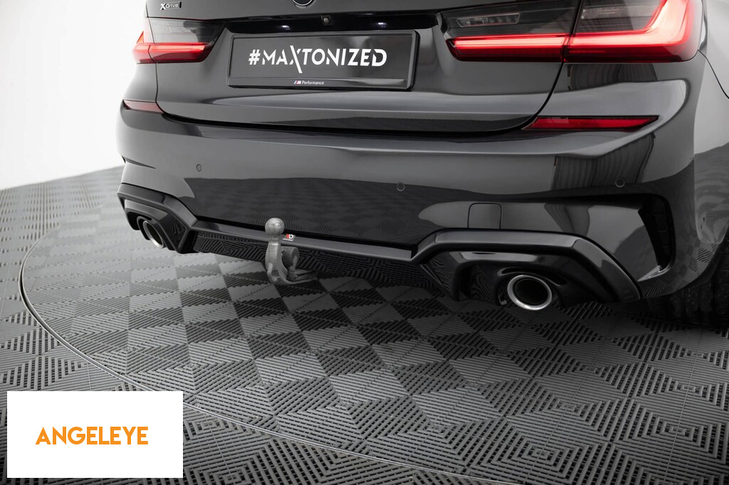 Difuzor Maxton Design potrivit pentru bara spate a BMW Seria 3 G20 sedan, G21 break cu pachet M 2018-2022, lac negru, potrivit pentru vehicule cu cârlig de remorcare