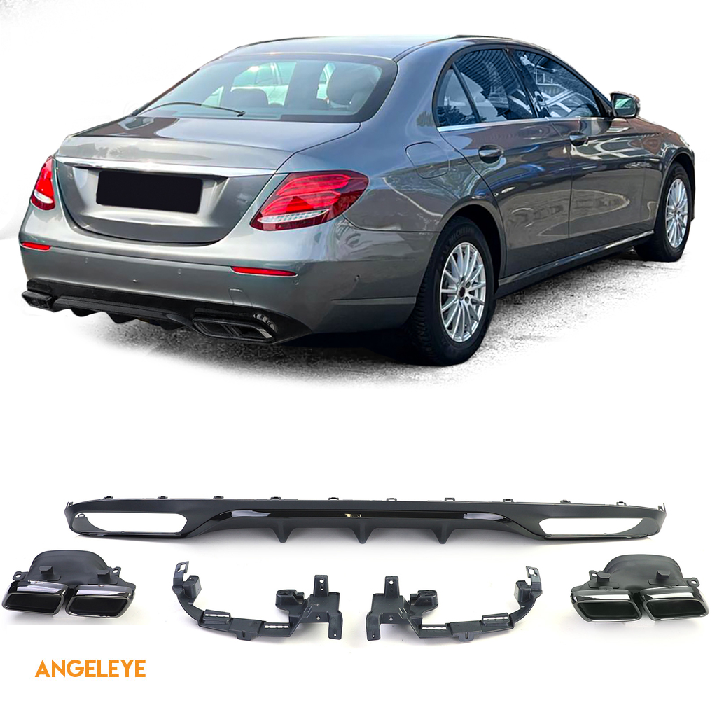 Difuzor spate cu ieșiri de evacuare negre, potrivit pentru Mercedes E-Class W213 fără linia de design A