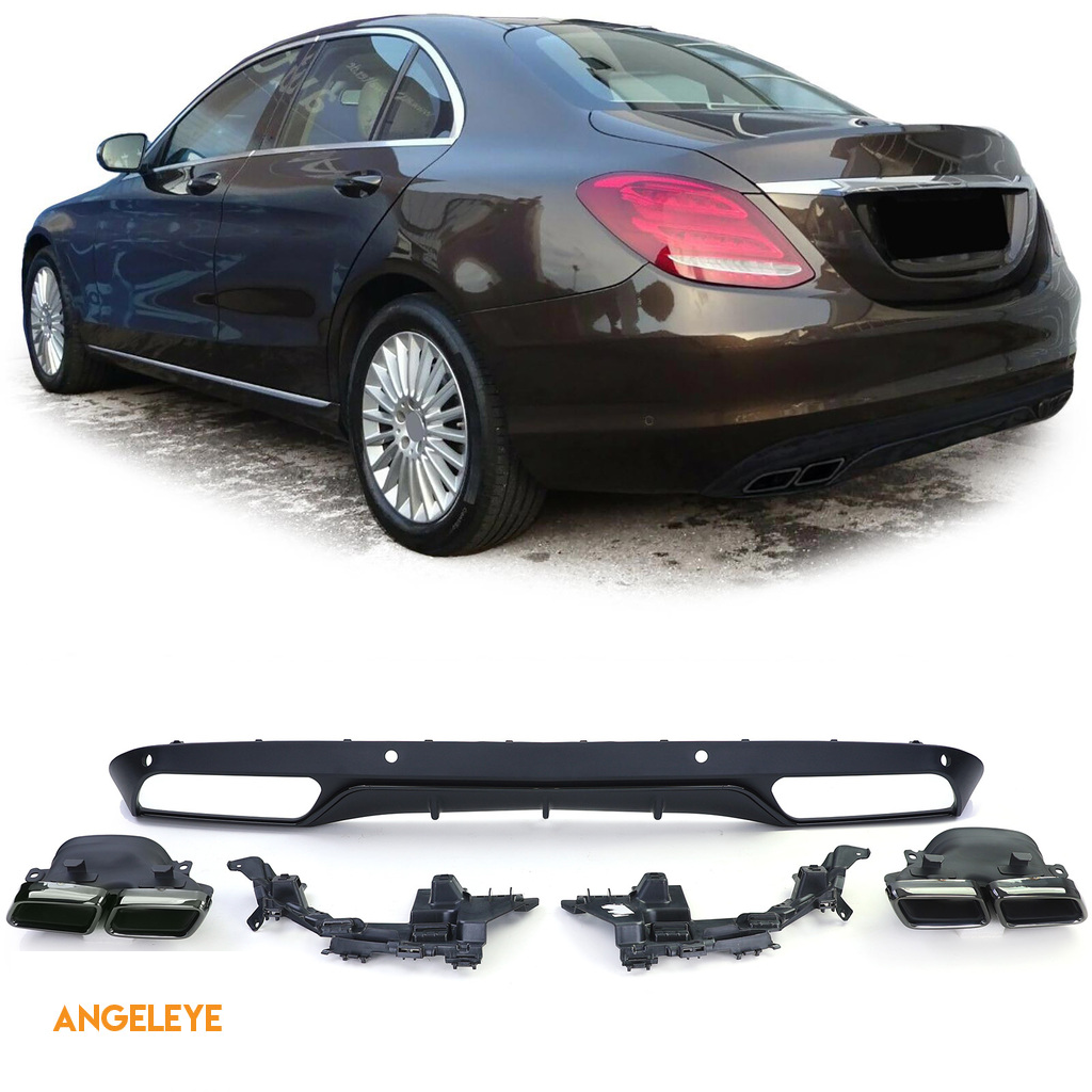 Difuzor sportiv spate cu tevi de evacuare negre, potrivit pentru Mercedes W205 sedan 14-18