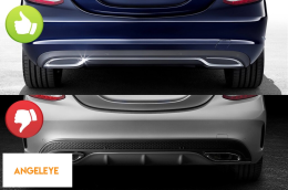 Difuzor tip C63 A Design, potrivit pentru bara de protecție din spate standard a Mercedes C-Class W205, cu două deschideri pentru evacuare dublă, fabricat din plastic ABS de înaltă calitate. Difuzorul se potrivește perfect. Oferă un aspect unic și diferit vehiculului. Difuzorul de tuning dispune de deschideri duble pe partea stângă și dreaptă. Deschiderile sunt potrivite pentru un capăt de evacuare dublu, așa cum este indicat în grafic. *Capetele sunt atașate la difuzor prin intermediul elementelor de fixare. Acest model de difuzor este destinat pentru bara de protecție standard. Acest lucru se datorează formei specifice a barei de protecție standard instalate de producătorul vehiculului. Difuzorul este fabricat din plastic ABS elastic, rezistent la impact, de înaltă calitate. Fiecare colț și deschidere a difuzorului sunt prelucrate cu atenție pentru a evita margini ascuțite neplăcute, astfel obținându-se elementul perfect pentru o potrivire de 100%. Compatibilitate: