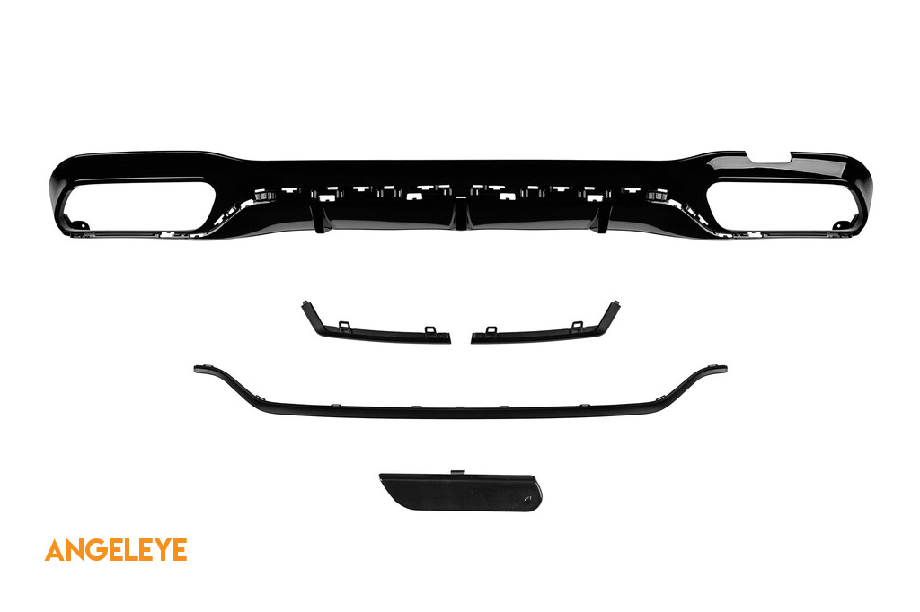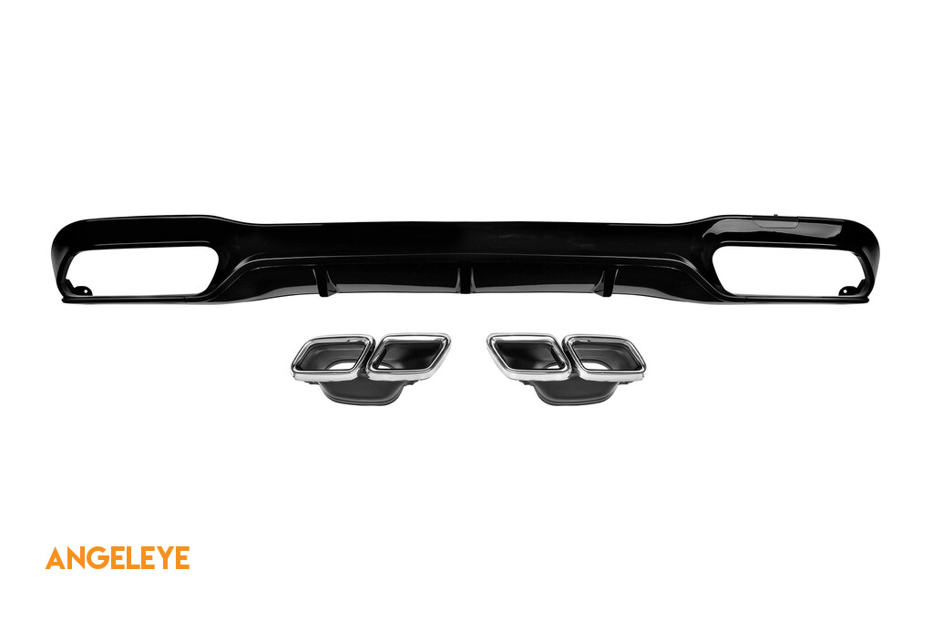 Difuzor cu duze pentru bara spate A Design potrivit pentru Mercedes E-Class W213 după 2016 cu două deschideri pentru evacuare dublă, fabricat din plastic ABS de înaltă calitate. Difuzorul se potrivește perfect. Oferă un aspect unic și diferit vehiculului. Difuzorul de tuning dispune de deschideri duble pe partea stângă și dreaptă. Deschiderile sunt potrivite pentru un capăt de evacuare dublu, așa cum este indicat în grafic. De asemenea, poate fi instalat un capăt de evacuare oval. Acest model de difuzor este destinat unei bare de tuning. Acest lucru se datorează formei specifice a barei de tuning comparativ cu bara standard instalată de producătorul vehiculului. Difuzorul este fabricat din plastic ABS elastic, rezistent la impact, de înaltă calitate. Fiecare colț și deschidere a difuzorului sunt procesate cu atenție pentru a evita marginile ascuțite neplăcute, astfel obținându-se elementul perfect pentru o potrivire de 100%. Compatibilitate:
