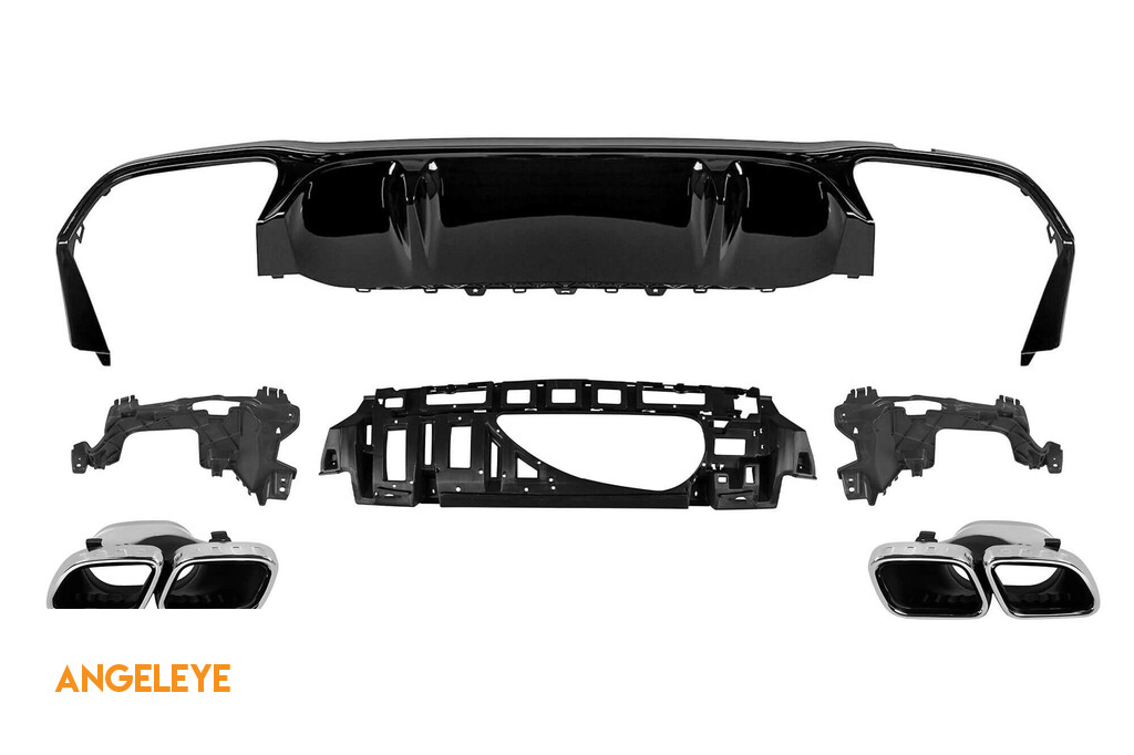 Difuzor tip E63 GT cu capete cromate potrivit pentru bara spate A Design la Mercedes E-Class W213 după 2020 -oo--oo-, garnitură neagră