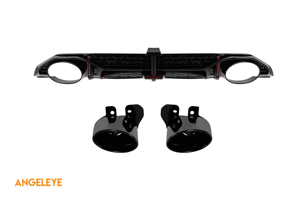 Difuzor tip RS3 cu capete negre potrivit pentru bara spate S-line pe Audi A3 hatchback 2020-2024 -oo--oo-