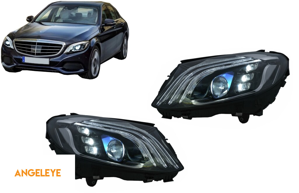Faruri Full LED compatibil cu Mercedes C-Class W205 S205 (2014-2020) LHD W222 Design