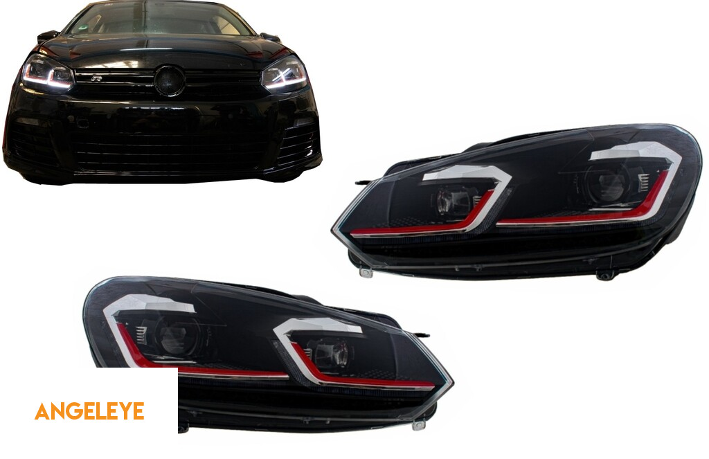 Faruri LED compatibil cu VW Golf 6 VI (2008-2013) Facelift G7.5 GTI Design Rosu Semnalizare Secventiala LHD