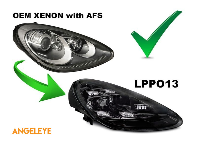 Faruri LED de tuning potrivite pentru Porsche Cayenne 2010-2015 pentru modelul echipat cu xenon din fabrică și AFS, cu bază neagră, stânga și dreapta