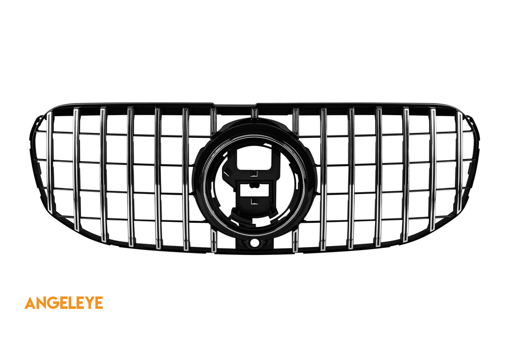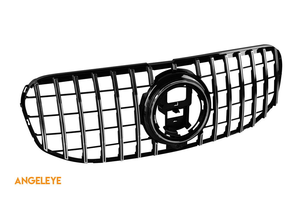 Grilă tip GT crom/neagră potrivită pentru Mercedes GLS X167 2020-2023 cu deschidere pentru cameră