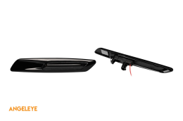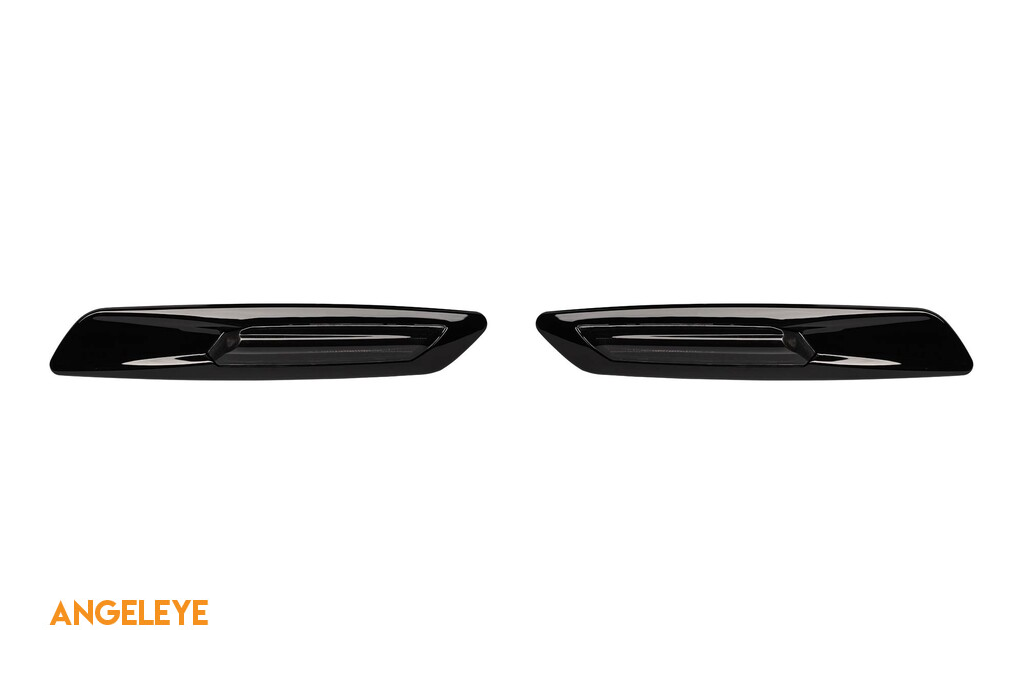 Indicatori de tuning tip F10 potriviți pentru BMW E82, E88, E90, E91, E92, E93, E60, E61 cu bază fumurie și cadru negru, stânga + dreapta