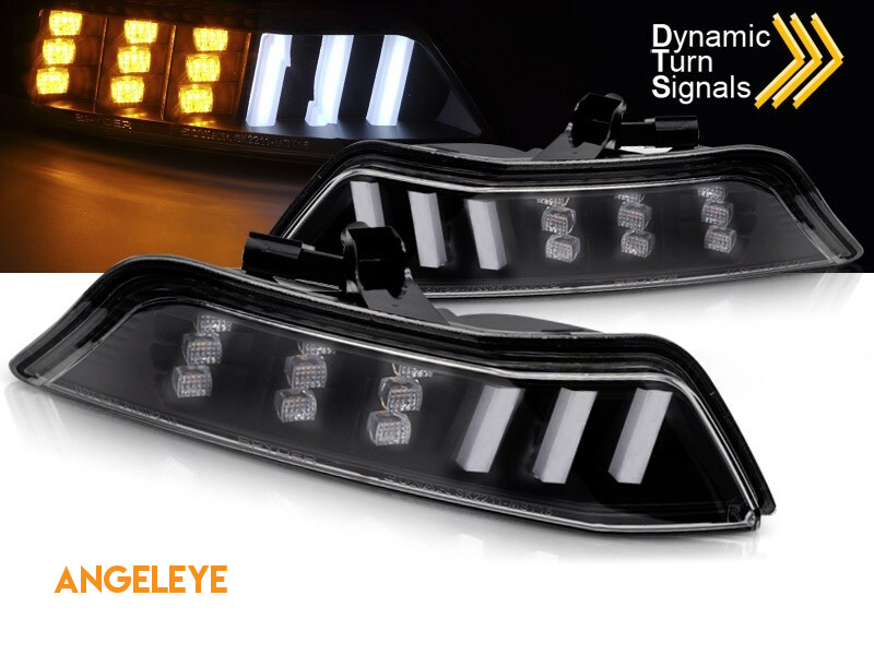 Kit de semnalizatoare LED potrivit pentru bara de protecție frontală pentru Ford Mustang 2015-2017 cu bază neagră, stânga + dreapta