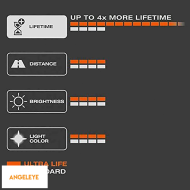Un criteriu cheie în dezvoltarea lămpilor xenon XENARC ULTRA LIFE a fost longevitatea acestora. Comparativ cu lămpile xenon standard, aceste lămpi de far oferă o durată de viață de până la patru ori mai lungă, făcându-vă viața puțin mai puțin stresantă. Aceste lămpi fiabile impresionează cu un ciclu de înlocuire lung de până la 300.000 km (bazat pe un kilometraj anual mediu de 14.259 km, cu 60% din acel timp cu luminile aprinse).