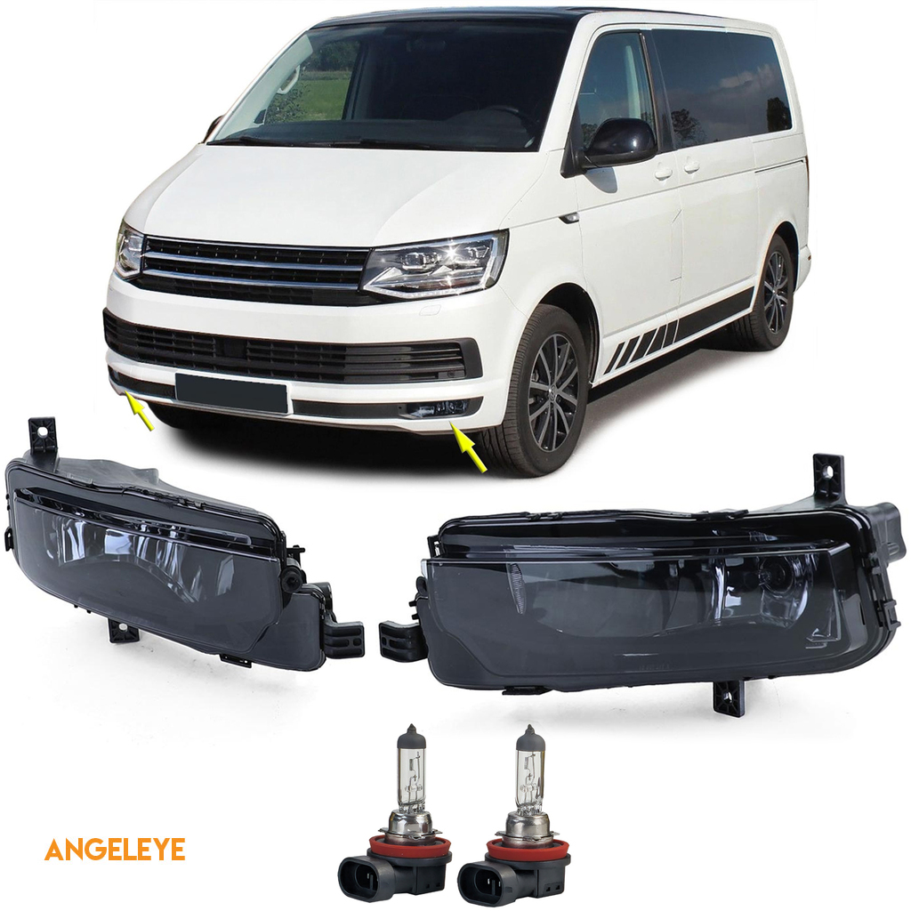 Pereche de faruri de ceață cu sticlă clară și fum negru, potrivite pentru VW T6 Bus Transporter din 15