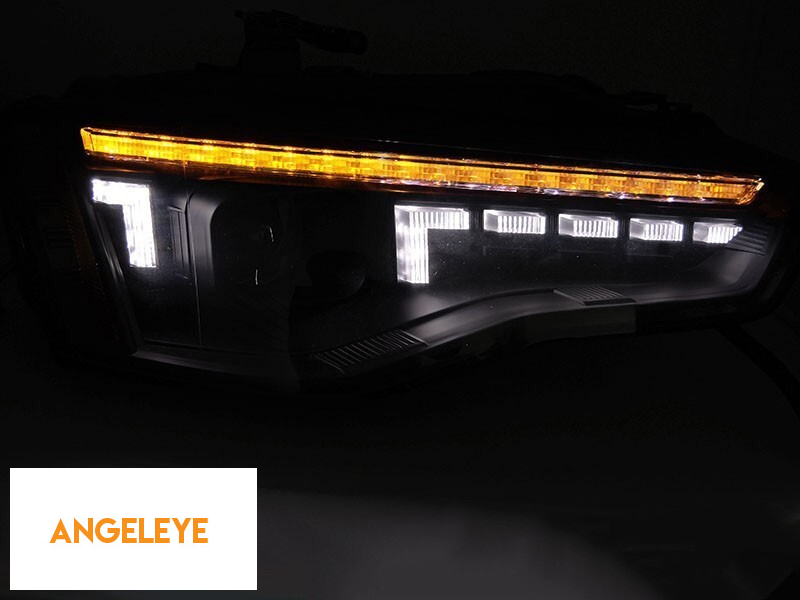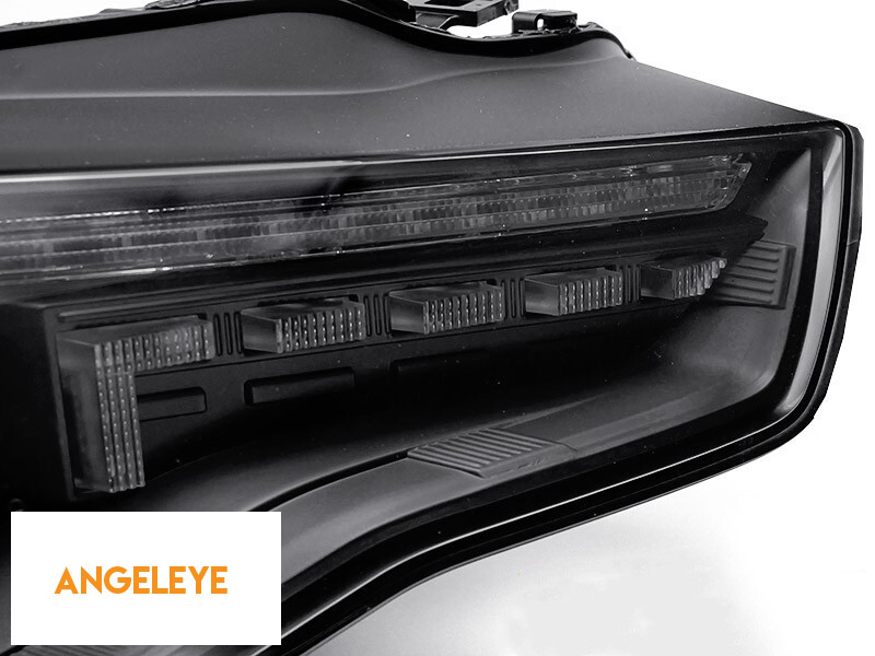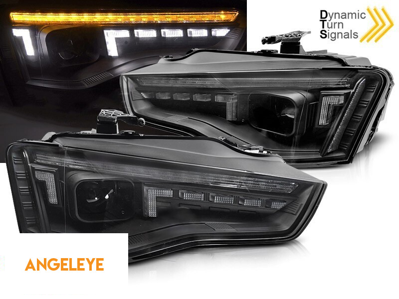 Set de faruri de tuning potrivit pentru Audi A5 2011-2016 cu bază neagră, pentru modelul cu lumini DRL din fabrică, cu semnalizatoare dinamice, stânga și dreapta