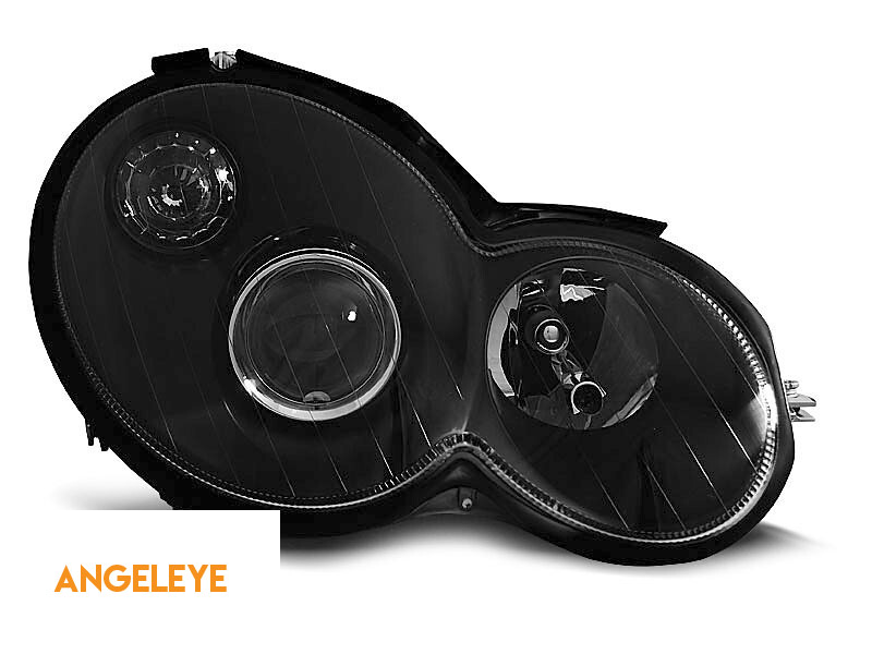 Set de faruri de tuning potrivit pentru Mercedes C-Class Sport Coupe CL203 2000-2004 cu bază neagră, stânga și dreapta