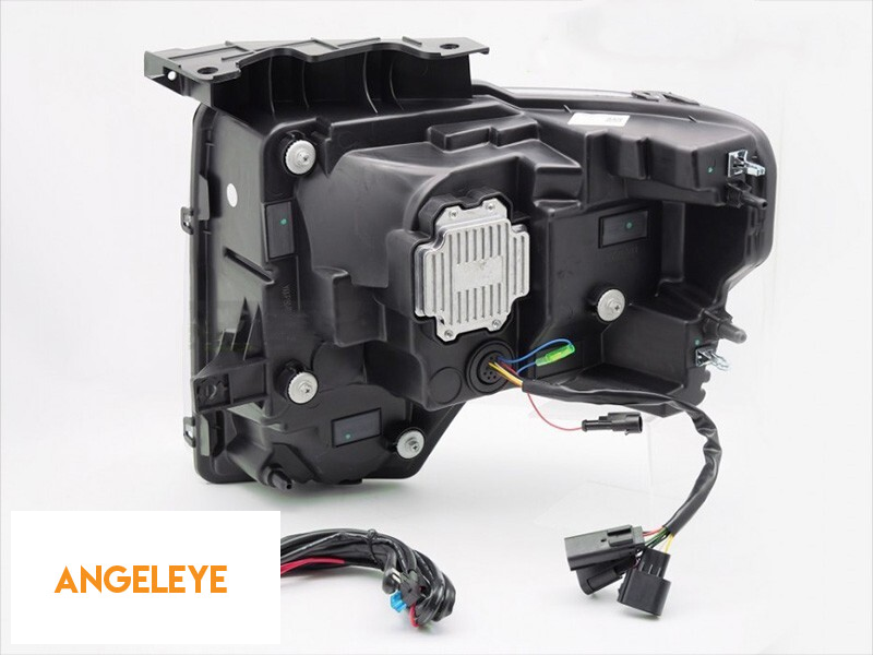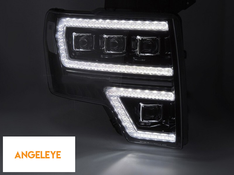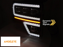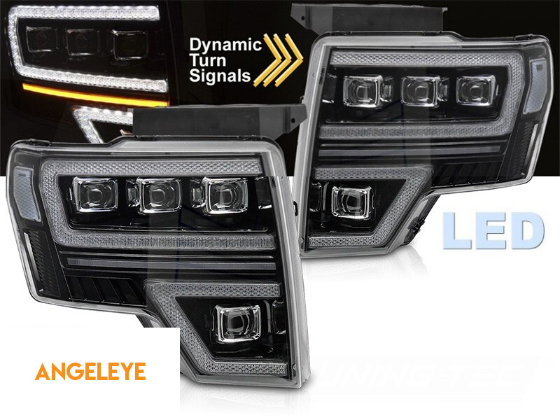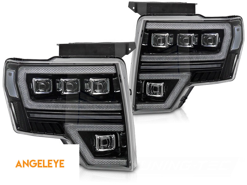 Set de faruri LED de tuning potrivit pentru Ford F150 2008-2014 cu bază neagră, pentru modelul cu lumini DRL din fabrică, cu semnale de întoarcere dinamice, cu funcția "Bun venit", stânga și dreapta