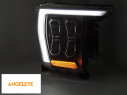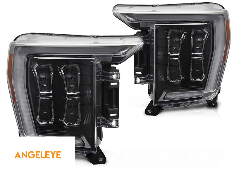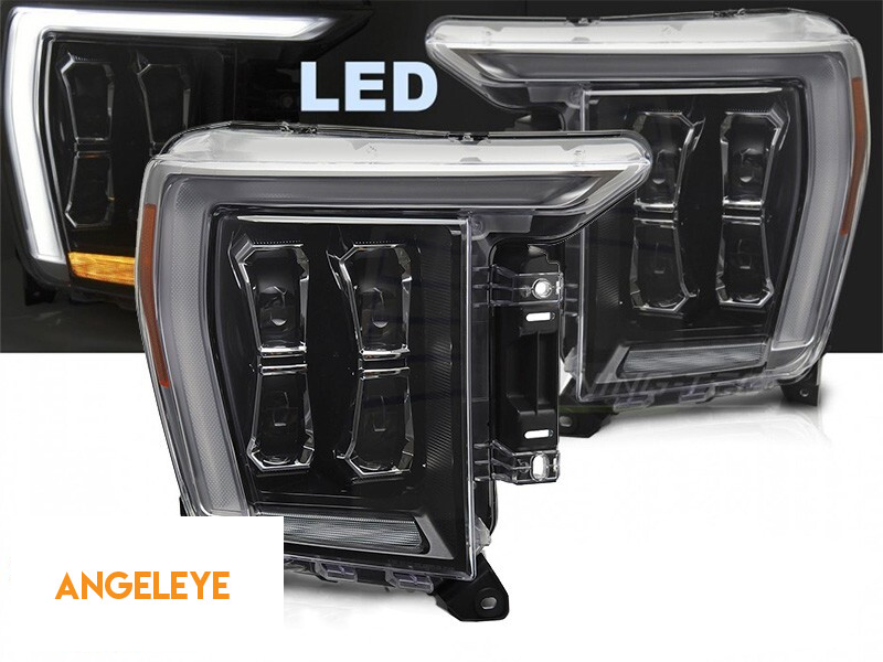 Set de faruri LED de tuning potrivit pentru Ford F150 2020-2023 cu bază neagră, pentru modelul cu lumini DRL de fabrică, stânga și dreapta