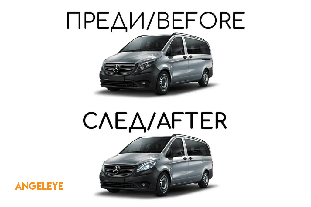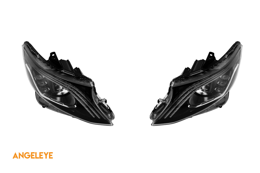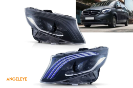 Set de faruri LED de tuning potrivit pentru Mercedes V-Class W447 Vito 2014-2023 cu bază neagră, pentru modelul cu lumini halogen de fabrică fără AFS, stânga și dreapta