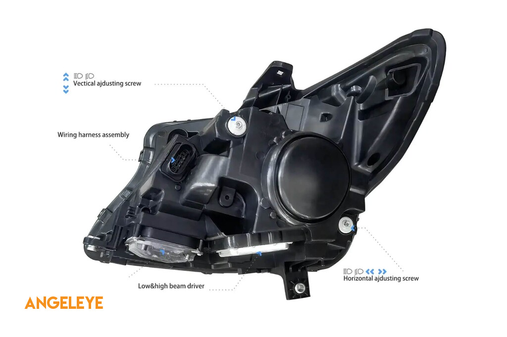 Farurile sunt unul dintre cele mai importante elemente ale vehiculului. O bună vizibilitate depinde în mare măsură de acestea. Acest model de faruri poate să vă ofere lumini de parcare sub forma 'Ochi de Înger'. O lentilă din sticlă de înaltă calitate se ocupă de grafica perfectă a luminii emise, îmbunătățind și direcționând dispersia luminii emise, indiferent dacă se folosește o bec halogen sau xenon. Acest model de faruri folosește becuri halogene pentru faza scurtă și lungă, fiecare model având o configurație individuală. Puteți găsi informații complete despre tipul de becuri utilizate în faruri în secțiunea 'Informații Tehnice'. Farurile sunt certificate conform E-mark. Designul lor inovator reîmprospătează aspectul vehiculului, făcându-l mai futurist și atractiv. Datorită acestor faruri, veți crește vizibilitatea suprafeței drumului cu până la 200%.