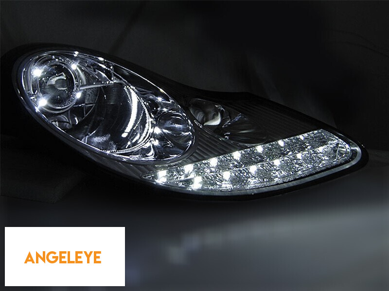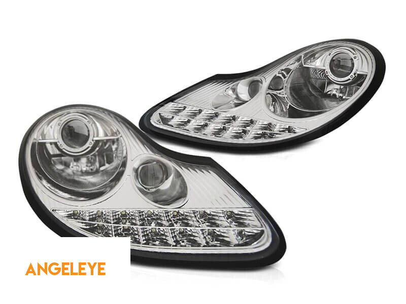 Set de faruri tuning cu DRL potrivit pentru Porsche Boxster 986, 911 Carrera 996 1996-2001 cu bază cromată, stânga și dreapta