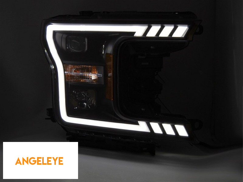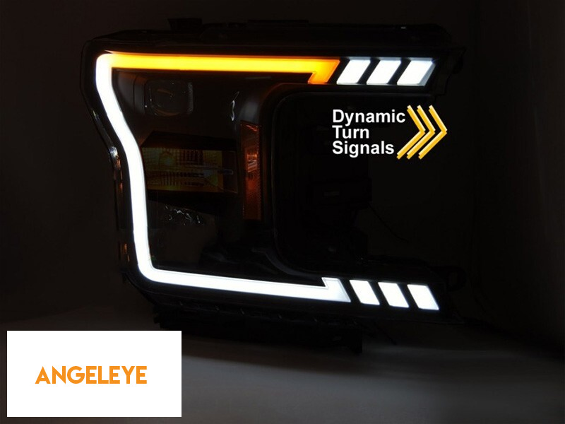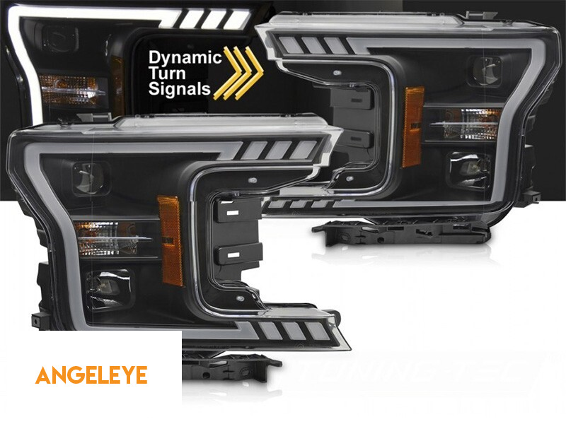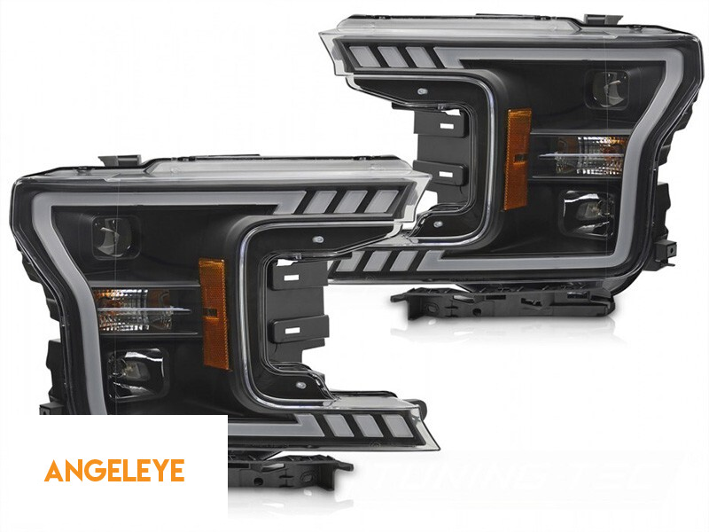 Set de faruri tuning cu lumină LED potrivit pentru Ford F150 2017-2020 cu bază neagră, cu semnale de direcție dinamice, stânga și dreapta