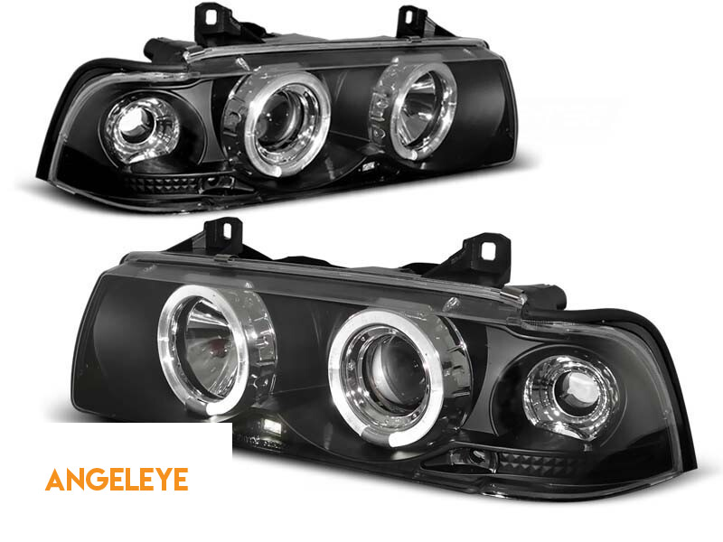 Set de faruri tuning cu ochi de înger halogen potrivit pentru BMW 3 E36 12.1990-08.1999 sedan/compact/combinate, stânga și dreapta