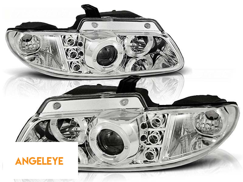 Farurile sunt unul dintre cele mai importante elemente ale vehiculului. O bună vizibilitate depinde foarte mult de acestea. Acest model de faruri poate să vă ofere lumini de poziție sub formă de 'Ochi de Înger'. O lentilă din sticlă de înaltă calitate se ocupă de grafica perfectă a luminii emise, îmbunătățind și direcționând dispersia luminii emise, indiferent dacă se folosește o bec halogen sau xenon. Lumina de poziție tip 'Ochi de Înger' este compusă din unități de iluminat rotunde/ovale. În funcție de modelul lor, acestea pot emite lumină albă caldă sau albă rece. Pot fi utilizate ca lumini de zi. Acest model de faruri folosește becuri halogene pentru faza scurtă și faza lungă, fiecare model având o configurație individuală. Puteți găsi informații complete despre tipul de becuri utilizate în faruri în secțiunea 'Informații Tehnice'. Farurile sunt certificate E-mark. Designul lor inovator reîmprospătează aspectul vehiculului, făcându-l mai futurist și atrăgător. Datorită acestor faruri, veți crește vizibilitatea suprafeței drumului cu până la 200%.