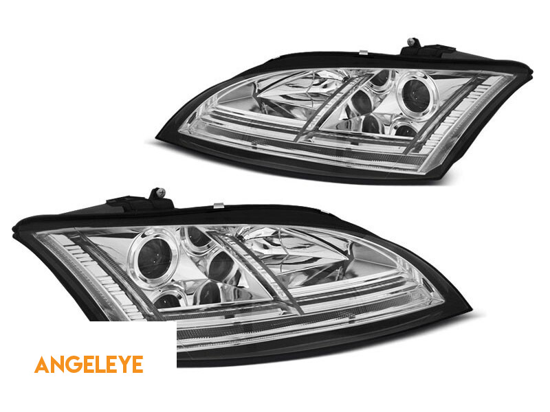 Set de faruri tuning potrivit pentru Audi TT 2006-2010 cu bază cromată, stânga și dreapta