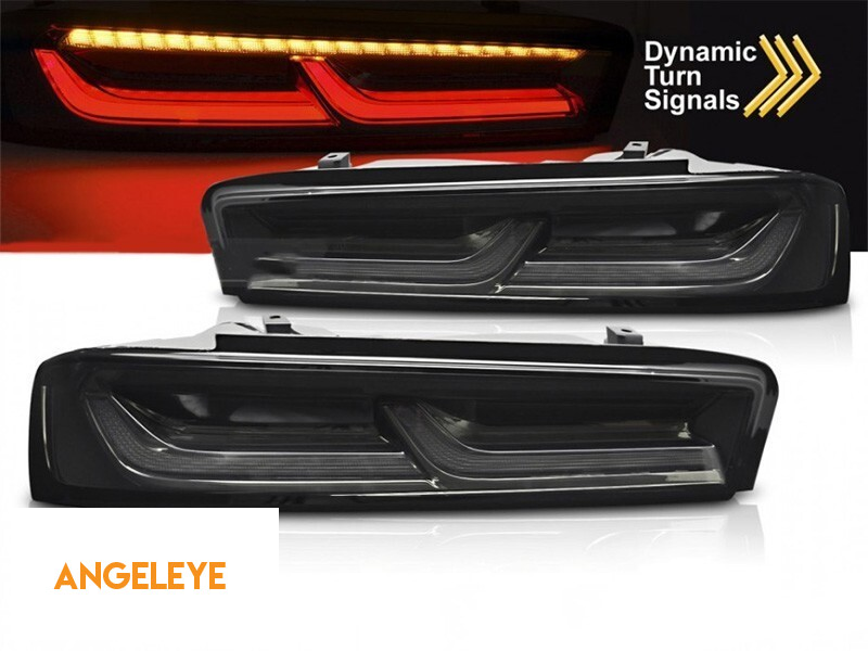 Set de stopuri LED de tuning potrivit pentru Chevrolet Camaro 2016-2018 cu bază fumurie, cu semnalizatoare dinamice, stânga și dreapta