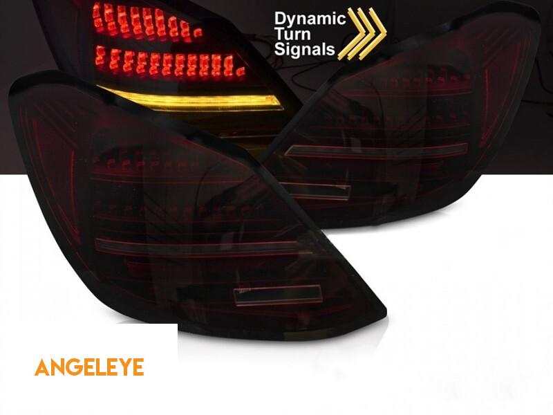 Set de stopuri LED de tuning potrivit pentru Mercedes C-Class W205 sedan 2014-2021, bază fumurie roșie, cu semnalizare dinamică, stânga și dreapta