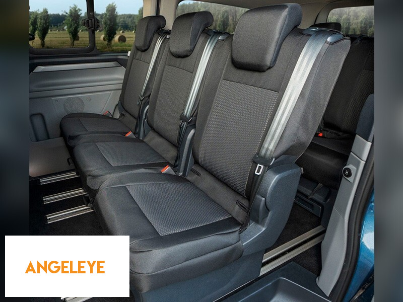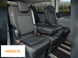 Tapițerie Kegel Tailor Made potrivită pentru rândul secund de scaune 1+1+1 pe Ford Tourneo Custom, Volkswagen T7 după 2024, neagră cu gri