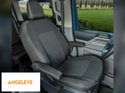 Tapițerie Kegel Tailor Made potrivită pentru un singur scaun de șofer cu două cotlere pentru Ford Transit Custom, Tourneo Custom, Volkswagen T7 după 2024, neagră cu gri
