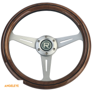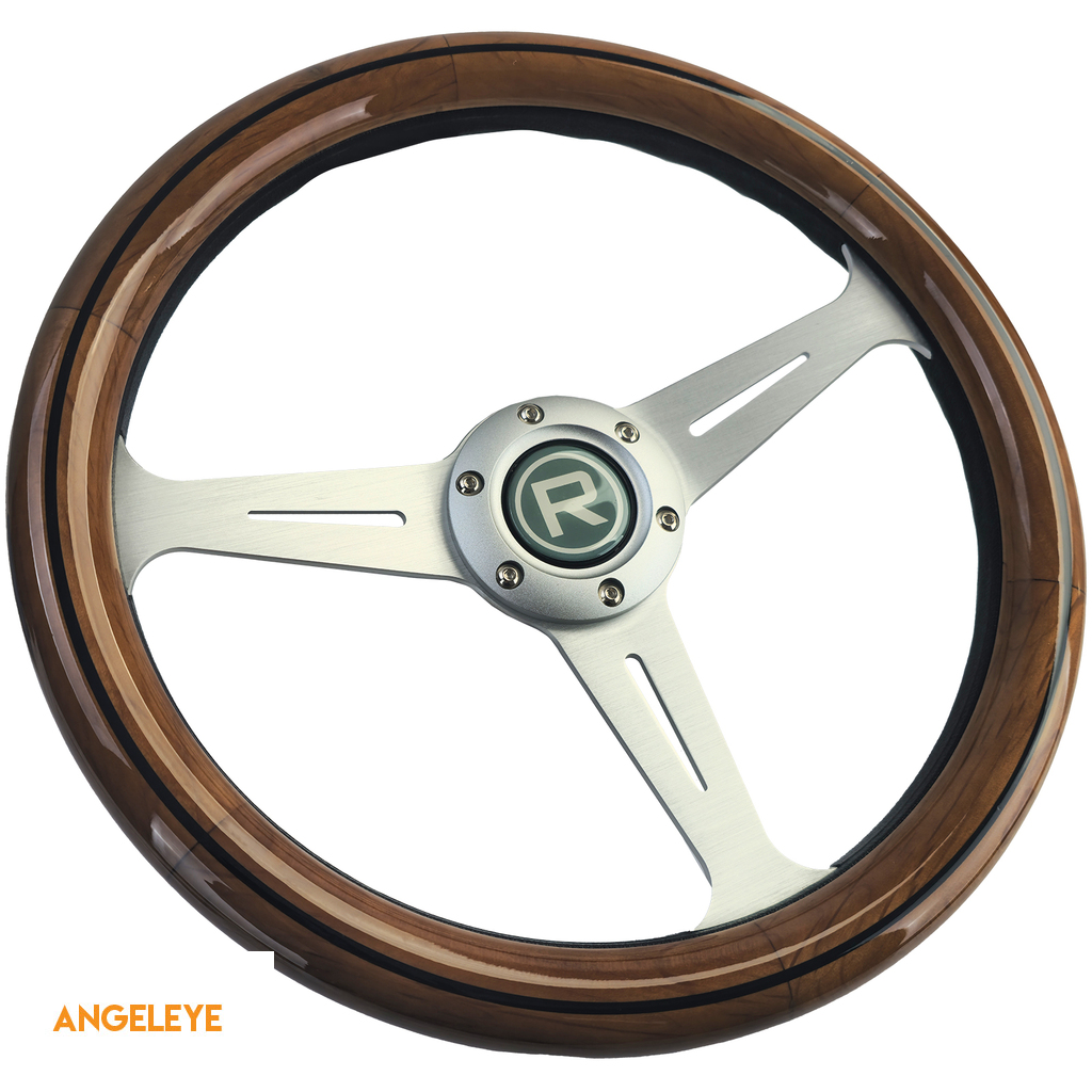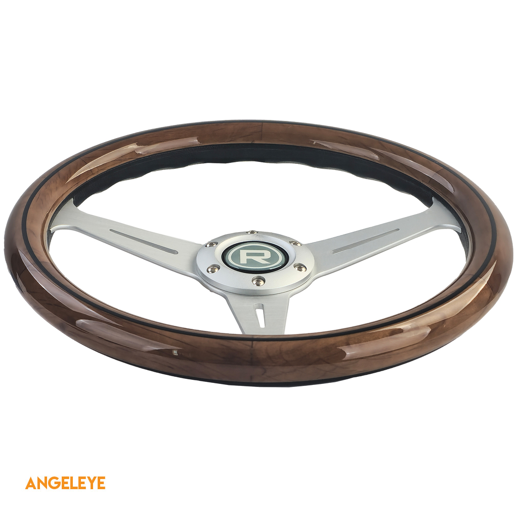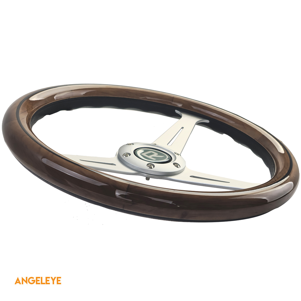 Volan din lemn de 35 de inci cu spițe argintii, stil vintage