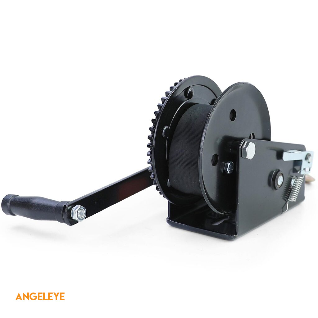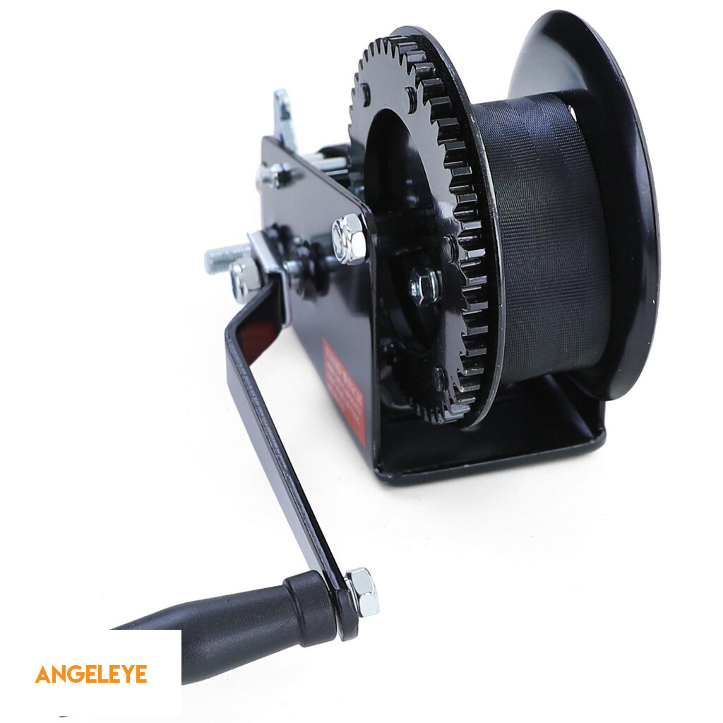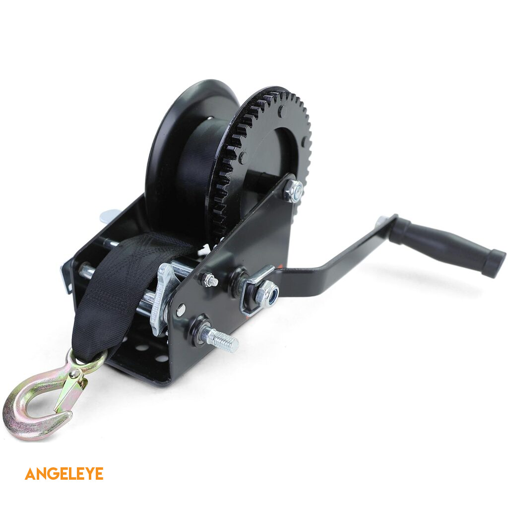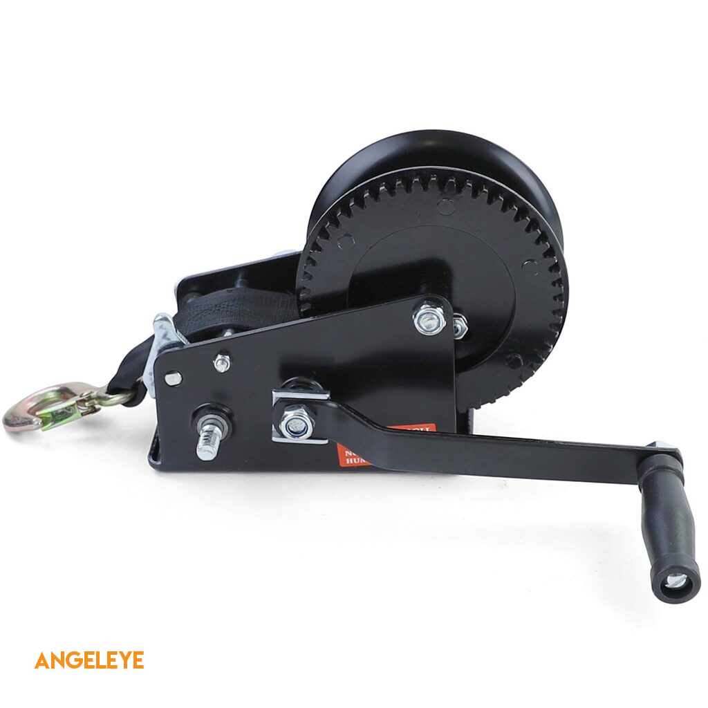 Winch manual premium cu curea 1500kg 8 metri negru, potrivit pentru remorcă auto